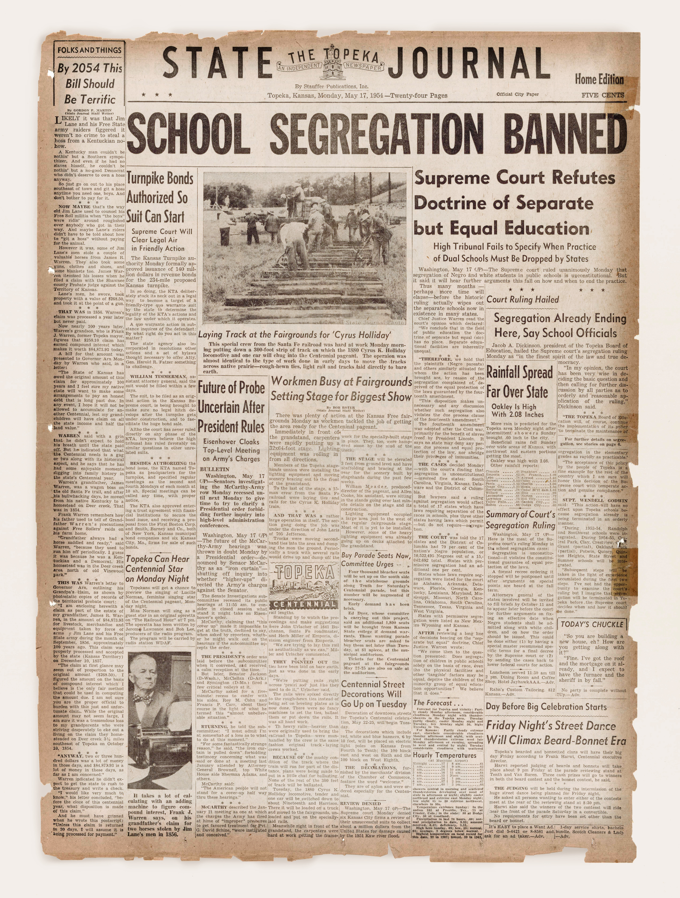 The Topeka State Journal was a daily afternoon paper founded at the end of the 19th century. The Journal’s main rival was the Topeka Daily Capital. Both papers covered the civil rights movement but downplayed racial tensions in Kansas, portraying the subject as an issue in the South, not the Midwest. Coverage of race issues increased in the 1950s, and in 1954, the State Journal provided extensive coverage of the Brown v. Board of Education decision and supported the Supreme Court’s ruling. In 1980, The Topeka State Journal merged with the Topeka Daily Capital.