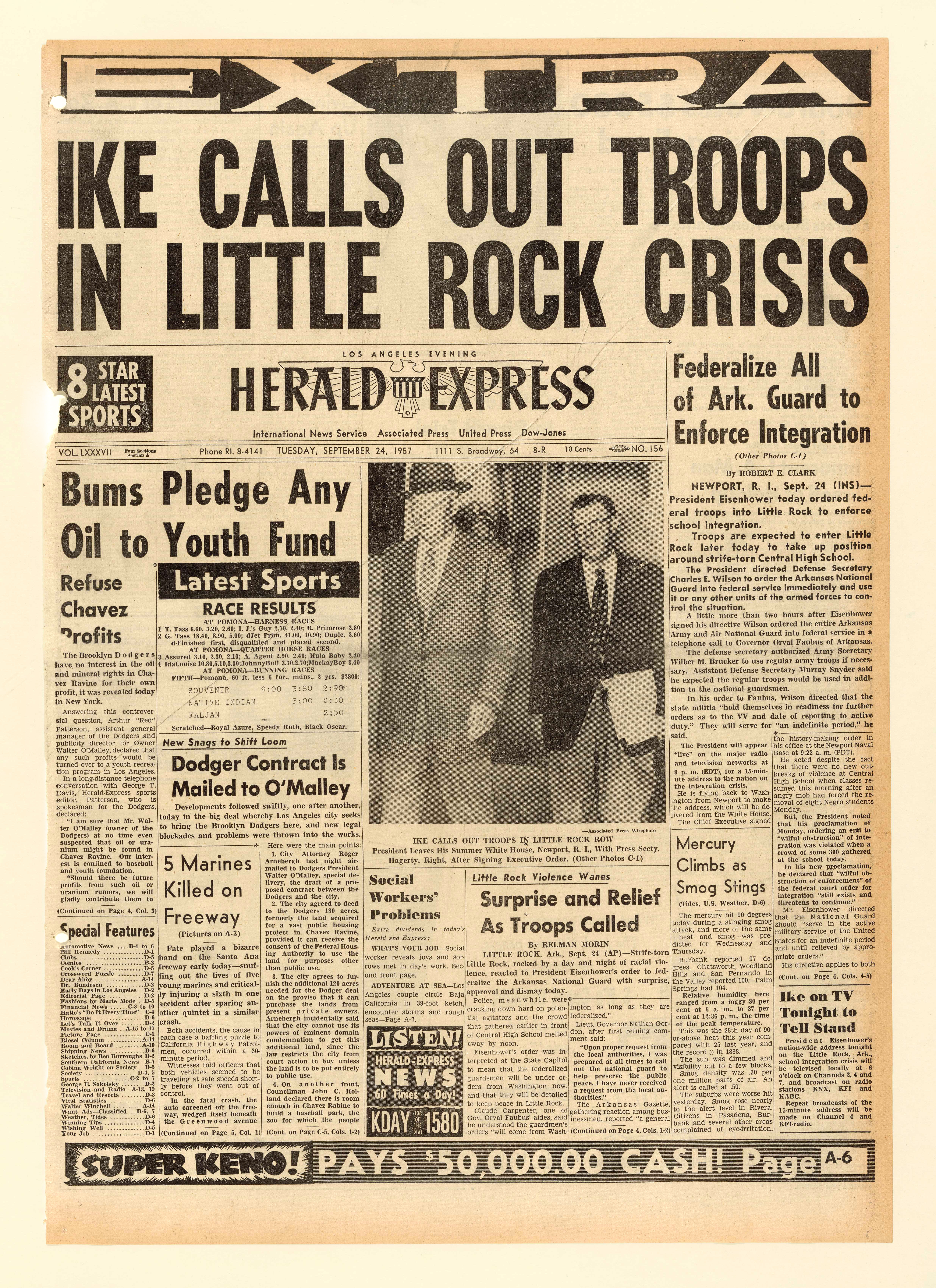 In December 1931, newspaper tycoon William Randolph Hearst purchased and merged two Los Angeles, Calif., newspapers to form the Los Angeles Evening Herald Express. Hearst pushed for innovations in writing and layout design to draw in new audiences. Until the early 1970s, the paper served the majority white city (blacks made up 7 percent of the population in 1960). The newspaper ceased publication in 1989.