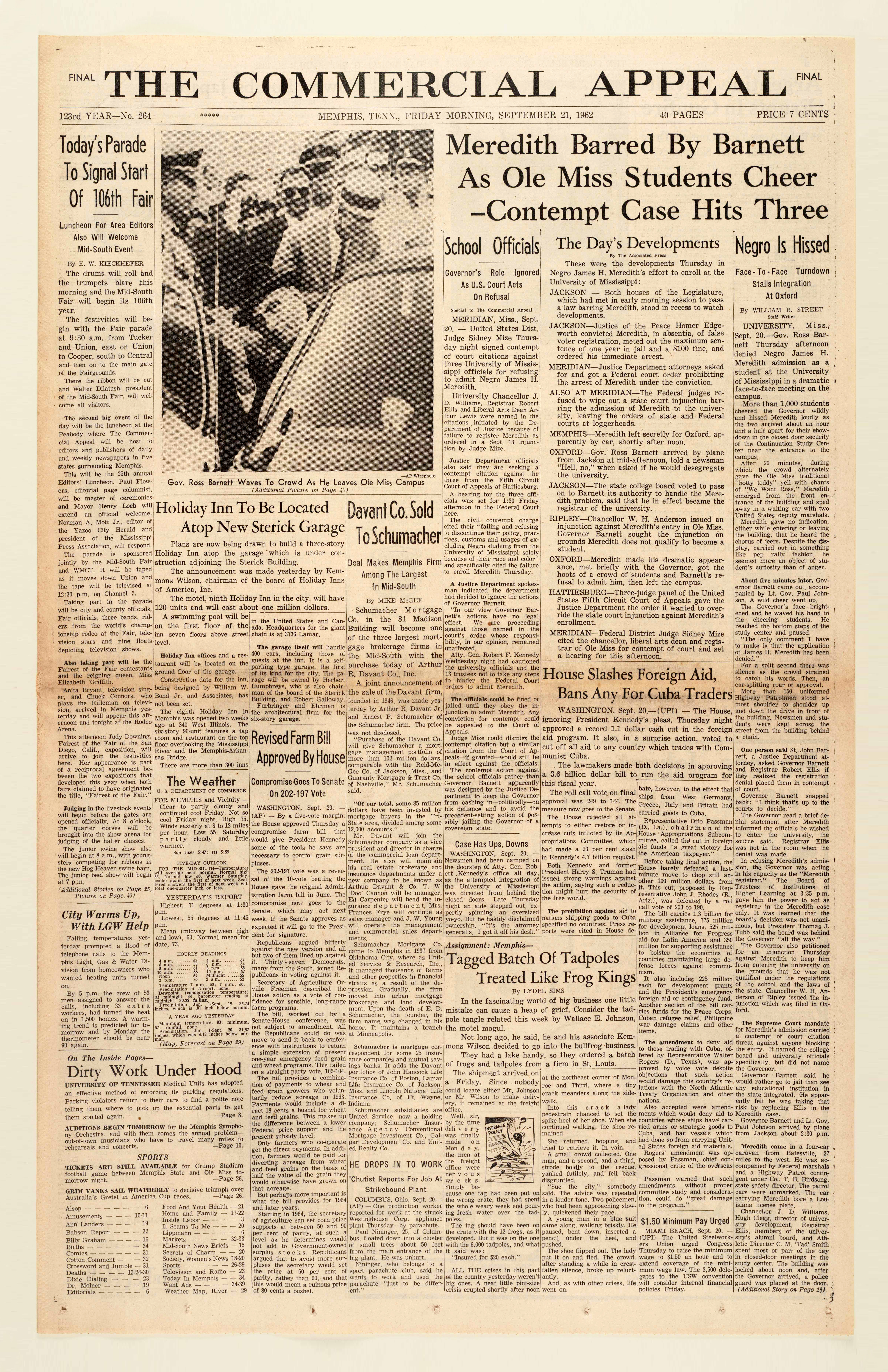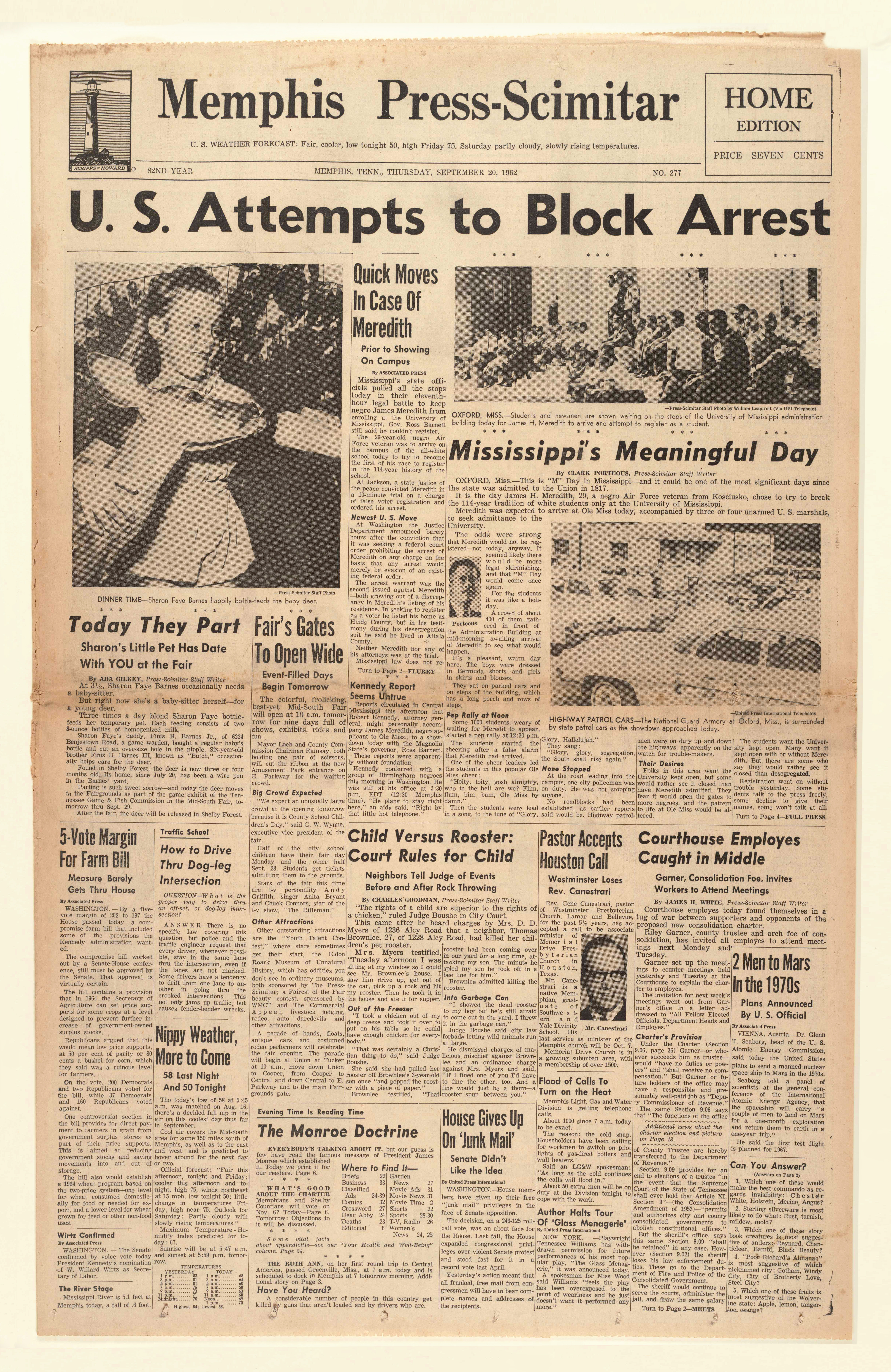 The Memphis Press-Scimitar was an evening daily paper that ran from 1926 to 1983. The paper’s chief rival was the Memphis morning paper, The Commercial Appeal, which was owned by the same company. The Press-Scimitar was known for being more liberal than most in the South. The paper covered the African-American community before many white papers, and, unusually, used courtesy titles such as “Mr.” and “Mrs.” when referring to African Americans.