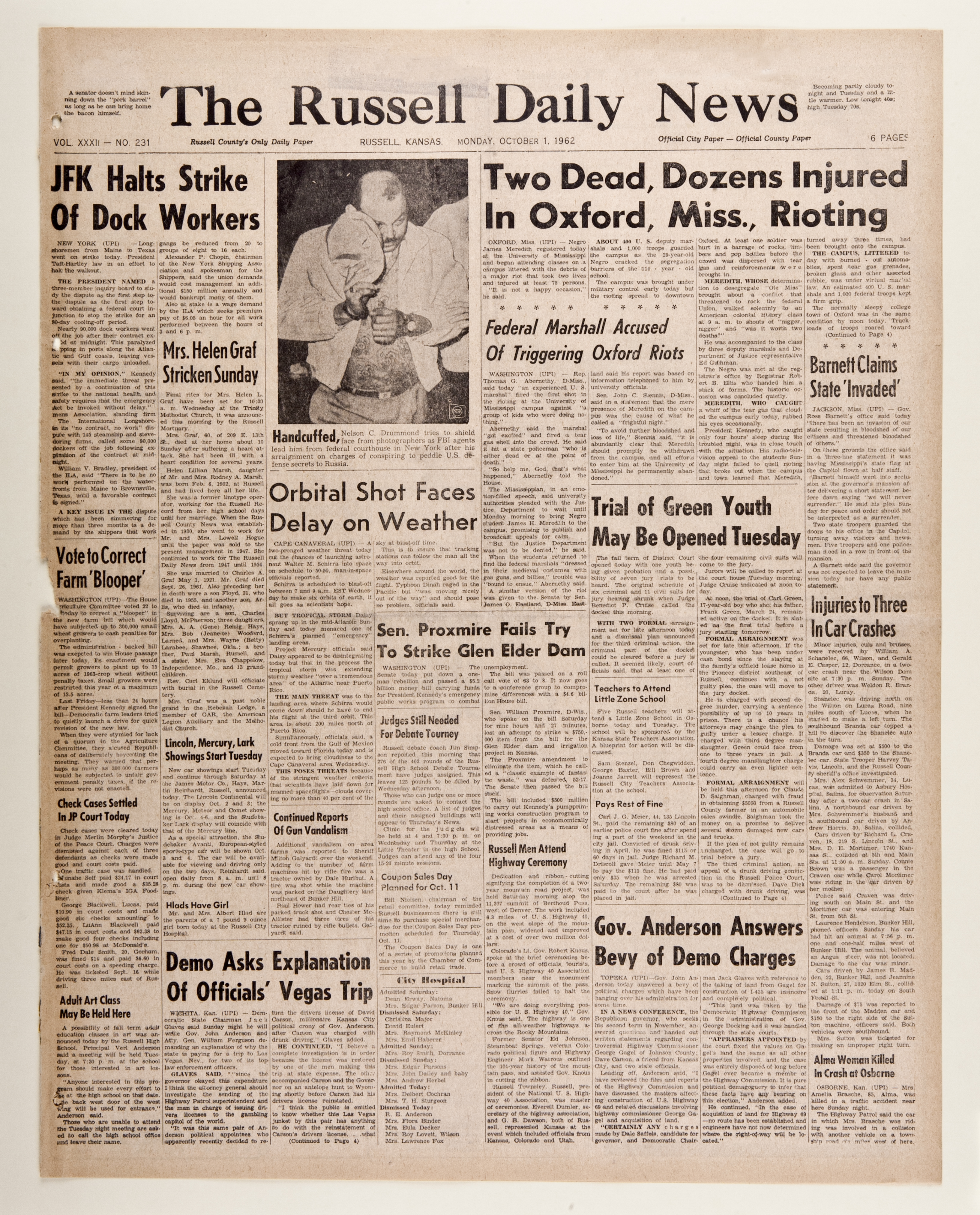 In 1947, siblings Russell Townsley, William L. Townsley and Helen Townsley Coogan bought The Russell County News and transformed it into The Russell Daily News. In 1960, the newspaper printed Monday through Saturday and served the majority-white town and county of Russell. Between 2000 and 2002, the newspaper changed its name back to The Russell County News and now publishes twice a week.